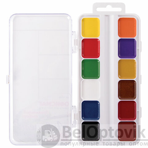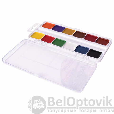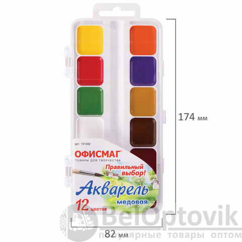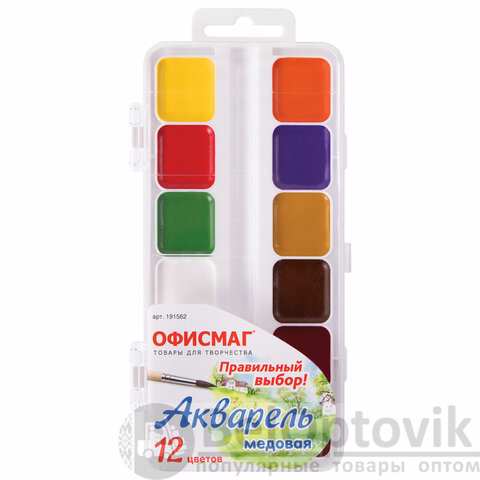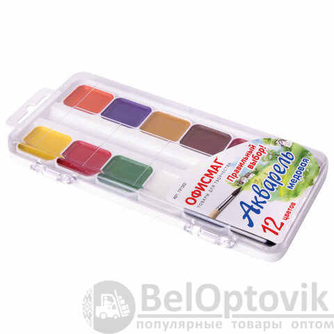 Краски акварельные школьные ОФИСМАГ, 12 цветов, медовые, пластиковая коробка, 191562