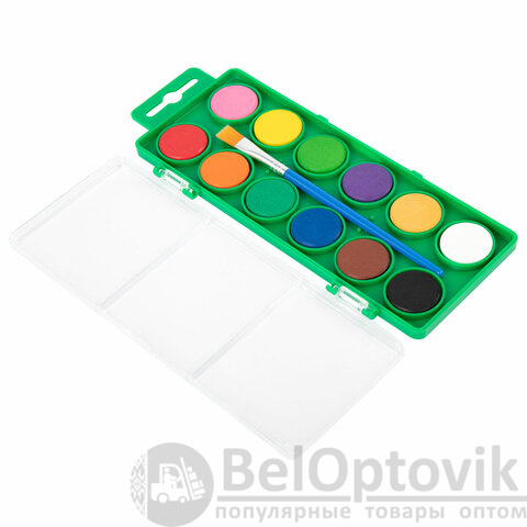 В наборе 12 насыщенных цветов, которые отлично смешиваются, позволяя создавать множество оттенков. Краски легко наносятся, образуя интенсивное яркое покрытие. Обеспечивают однородное окрашивание, быстро высыхают и не портятся со временем. Краски нетоксичны и безопасны для детей. Выпускаются в пластиковом пенале с европодвесом, прозрачной крышкой, круглой формой кювет и отделением для кисточки. Кисть входит в комплект! Съемную пластиковую крышку можно использовать в качестве палитры для смешивания красок. Пенал дополнительно упакован в термоусадку.