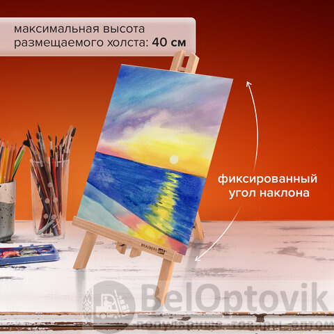 Мольберт настольный из бука 21х26х36 см, высота холста до 40 см, лакированный, BRAUBERG ART CLASSIC, 192254