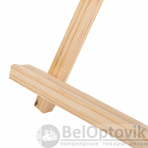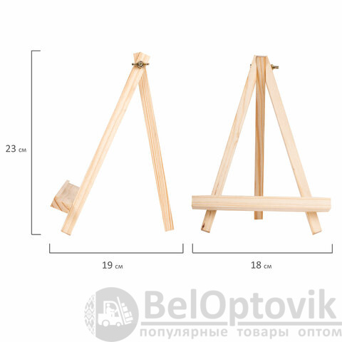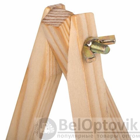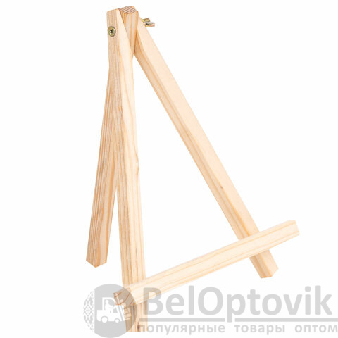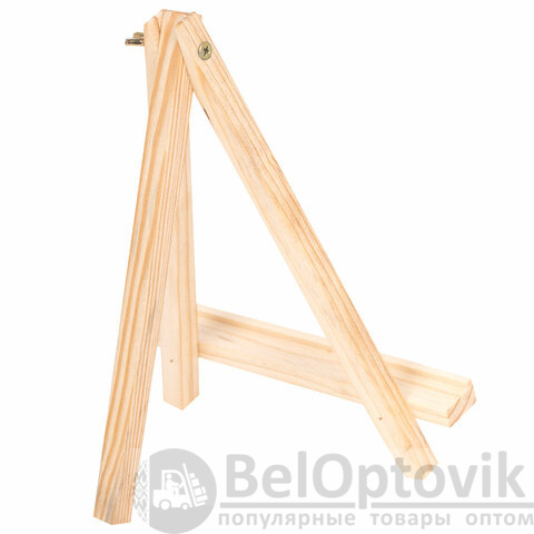 Изготовлен из натуральной сосны. Мольберт настольный прост в установке. Верхнее крепление обеспечивает жесткую фиксацию ножки, что позволяет отрегулировать угол наклона холста. Максимальная высота размещаемого холста - 25 см. Размер в разложенном виде - 18х19х23 см. Упакован в термоусадку.