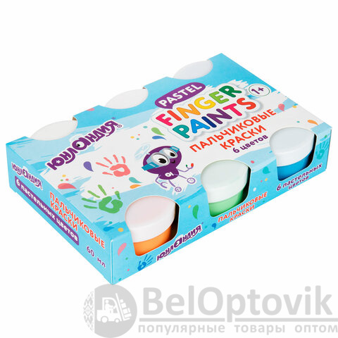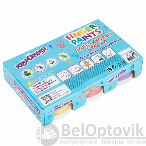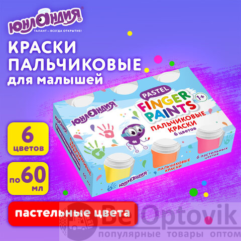 Краски пальчиковые для малышей от 1 года, пастельные цвета, 6 по 60 мл, ЮНЛАНДИЯ, 192569