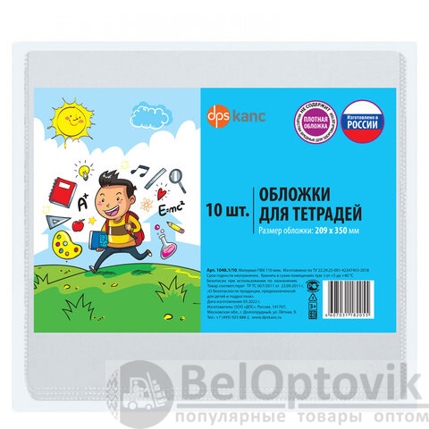 Обложки ПВХ для тетрадей и дневников, КОМПЛЕКТ 10 шт., ПЛОТНЫЕ, 110 мкм, 209х350 мм, прозрачные, ДПС, 1048.1/10