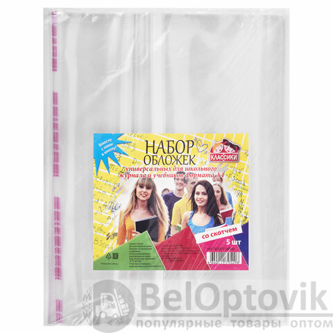 Обложки ПП для учебников и тетрадей А4 БОЛЬШОГО ФОРМАТА, КОМПЛЕКТ 5 шт., КЛЕЙКИЙ КРАЙ, 80 мкм, 300х500 мм, универсальные, 16.43/5