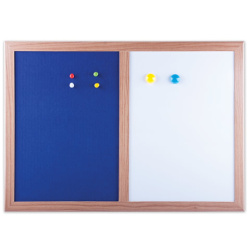 Сухостираемо-магнитная лакированная поверхность, соединенная с помощью деревянного профиля с пробковой поверхностью, покрытой тканью для более эстетичного вида. Доска выполнена в шлифованной лакированной деревянной рамке. Размер доски формата А3 - 34,2х48,4 см. Предусмотрен горизонтальный монтаж. Крепится к стене, элементы крепления и полка для принадлежностей входят в комплект. Гарантия 10 лет. На магнитной поверхности доски можно размещать информацию с помощью магнитов, также она подходит для письма маркером. На пробковой поверхности информационной доски можно прикрепить различные бумажные материалы, такие, как заметки, визитные карточки и т.п. Отверстия в пробке "закрываются" сразу же после извлечения кнопки. Таким образом, доска прослужит на протяжении долгих лет, несмотря на частое использование.