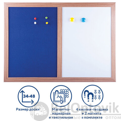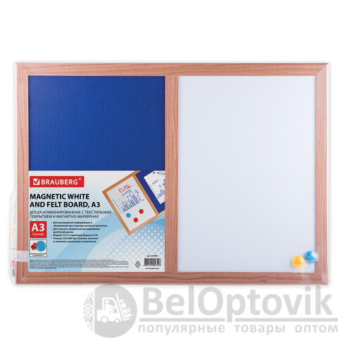 Доска комбинированная: магнитно-маркерная, текстильная для объявлений А3, 342х484 мм, BRAUBERG, 231995
