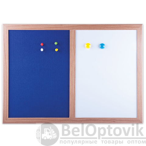 Комбинированная доска BRAUBERG - магнитно-маркерная и пробковая доски в единой рамке - позволит разместить объявления при помощи кнопок и офисных булавок. Широко используется в организациях различного рода деятельности.