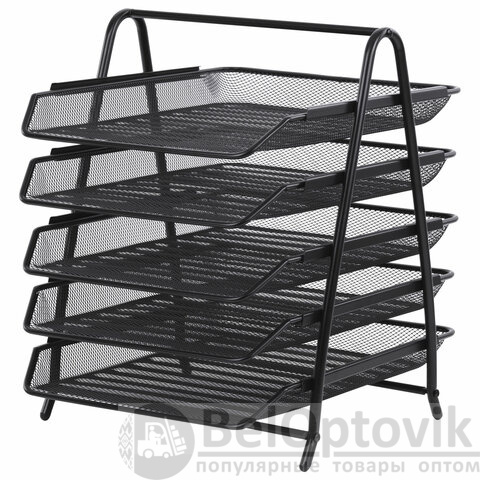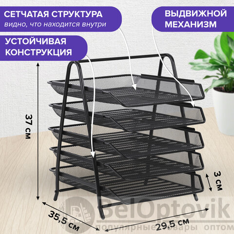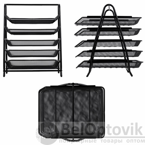 Лоток горизонтальный для бумаг BRAUBERG "Germanium", 5 секций, 370х355х295 мм, металл, черный, 237971