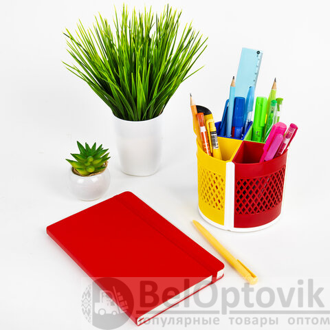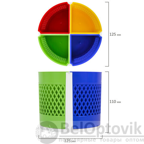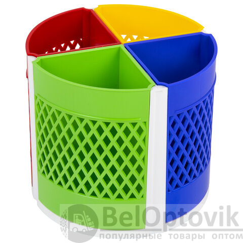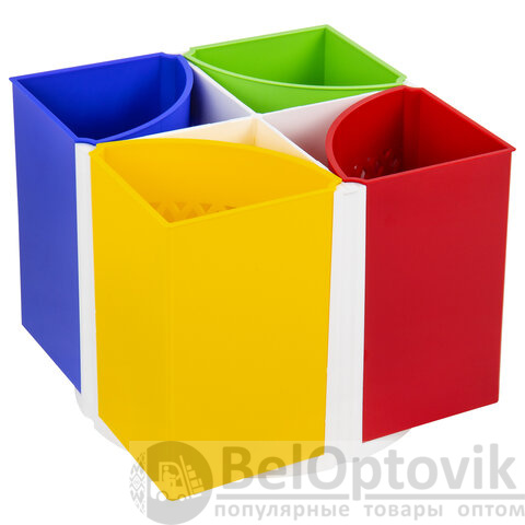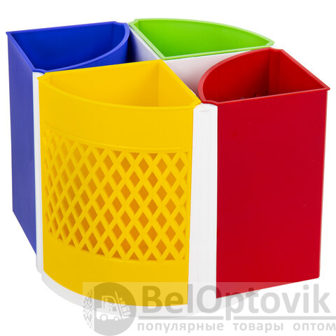 Эргономичная пластиковая подставка-трансформер размером 110х125 мм с регулируемым количеством отделений (от 4 до 8) для пишущих принадлежностей и канцелярских мелочей. Легко вращается на 360°. Поставляется без канцелярского наполнения.