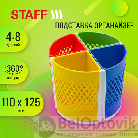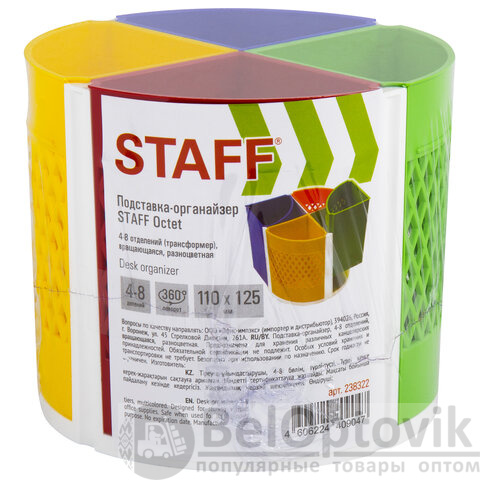 Подставка-органайзер STAFF "Octet", 4-8 отделений (трансформер), вращающаяся, разноцветная, 238322