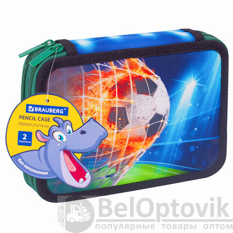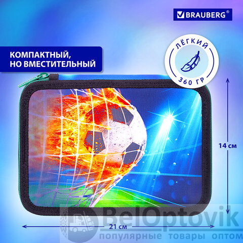 Пенал BRAUBERG, 2 отделения, полиэстер, 21х14 см, "Fire football", 270322