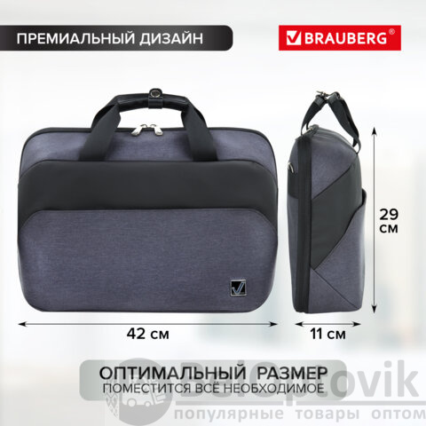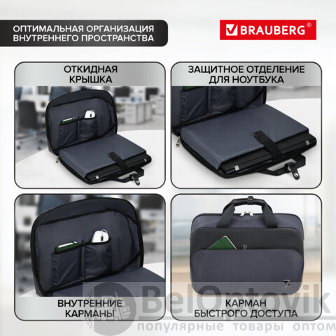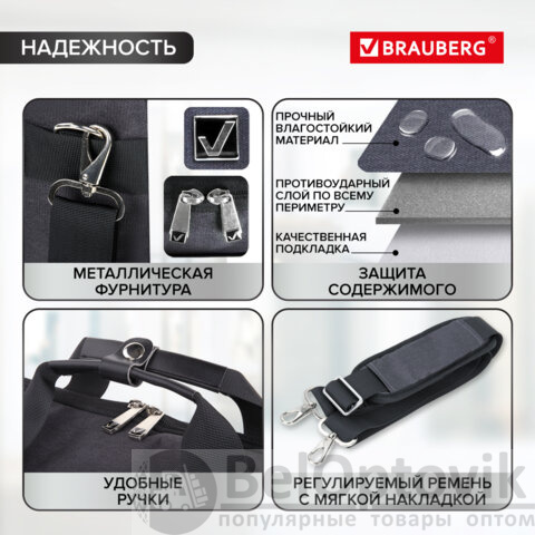 Многофункциональная сумка-портфель BRAUBERG "Modern" с отделением для ноутбука с диагональю экрана до 15-16" способствует безопасной переноске электронных устройств. Премиальный дизайн и МЕТАЛЛИЧЕСКАЯ ФУРНИТУРА подчеркивают статус владельца.