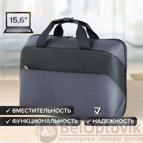 Сумка портфель BRAUBERG MODERN с отделением для ноутбука 15-16", откидная крышка, серая, 29х42х11 см, 270828