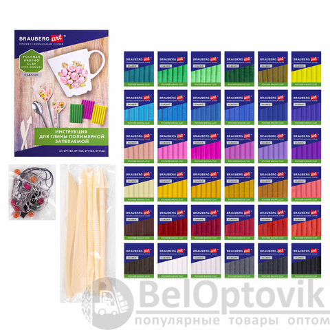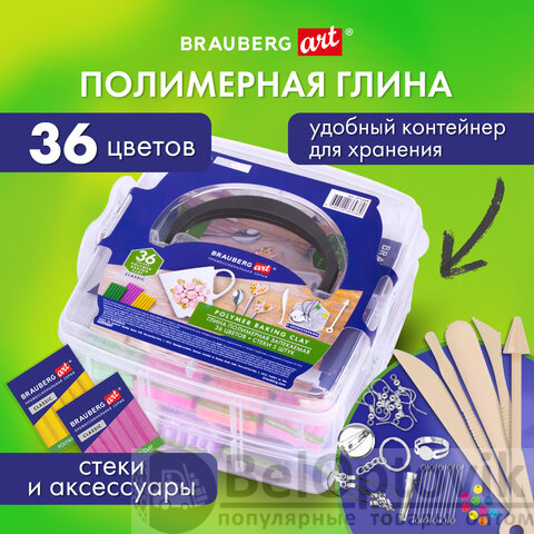 Глина полимерная запекаемая, НАБОР 36 цветов по 20 г, с аксессуарами в кейсе, BRAUBERG ART, 271164