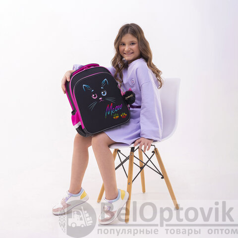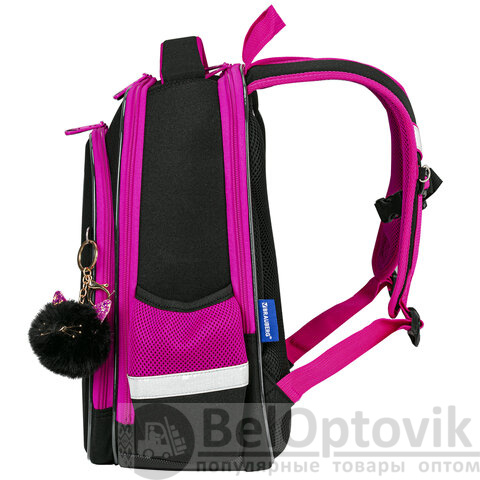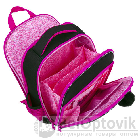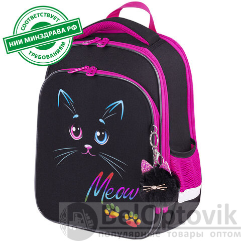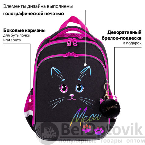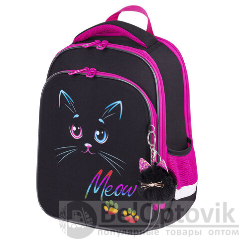 Надпись и лапки на передней панели ранца выполнены радужной голографической печатью, а пушистый брелок-подвеска дополняет дизайн ранца!
