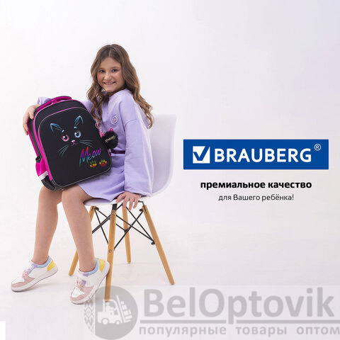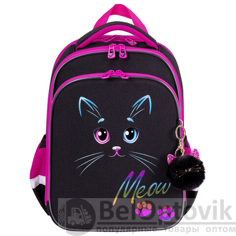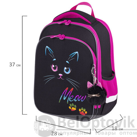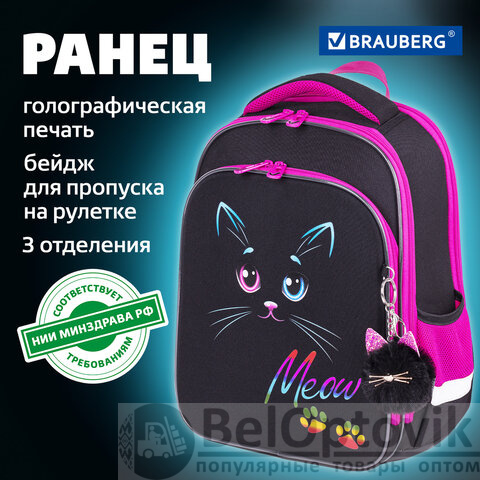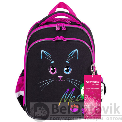 Ранец BRAUBERG QUADRO, 3 отделения, с брелоком, "Black cat", 37х28х18 см, 271358