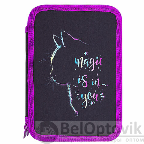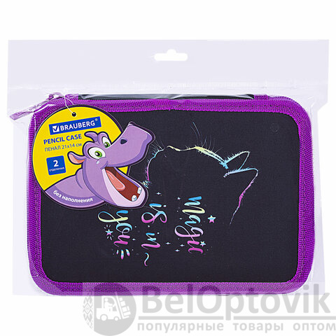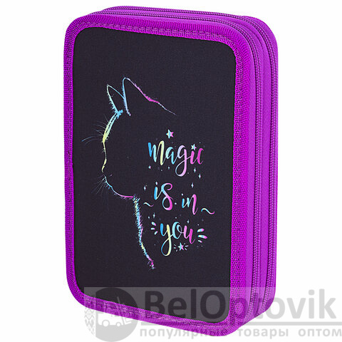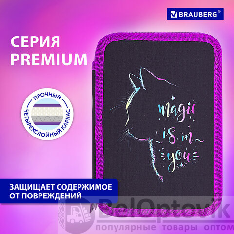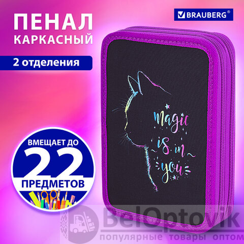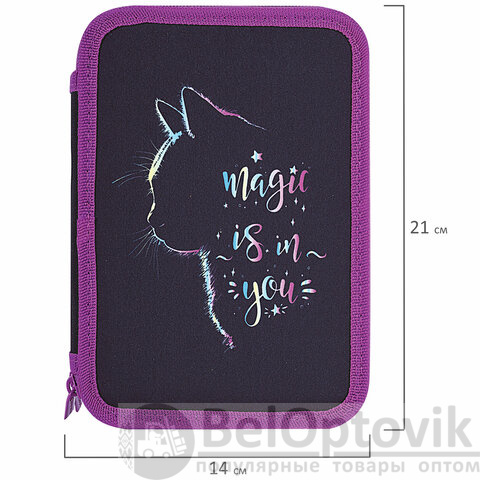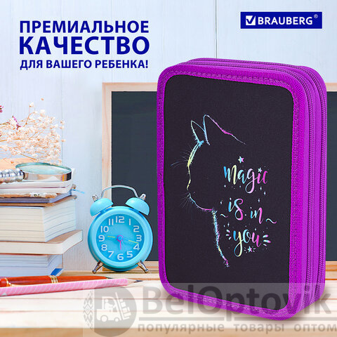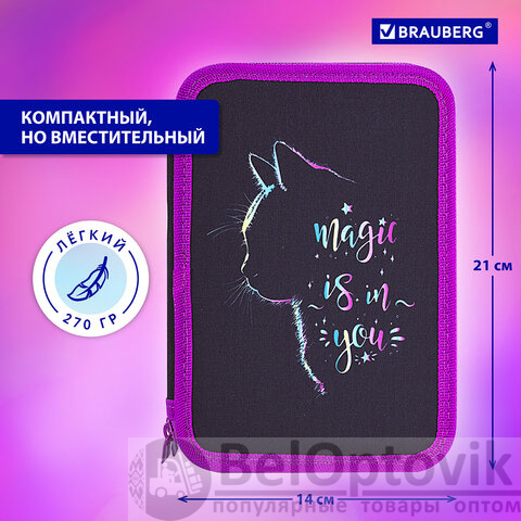 Пенал BRAUBERG, 2 отделения, полиэстер, 21х14 см, "Magic Cat", 271542