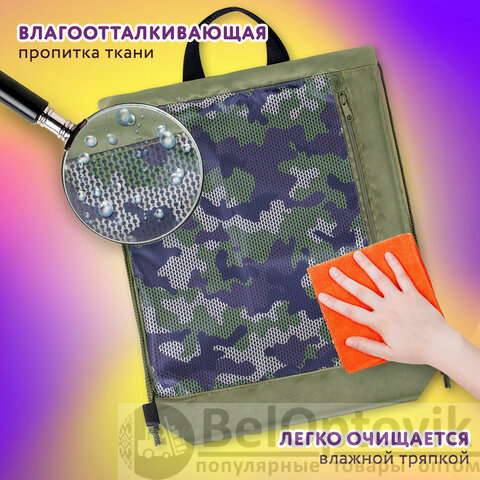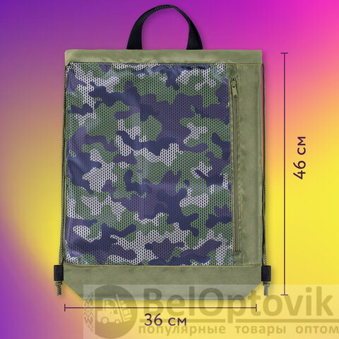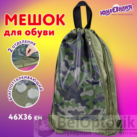 Мешок для обуви ЮНЛАНДИЯ, с ручками, боковой карман на молнии, 46х36 см, "Camo Mode", 271613
