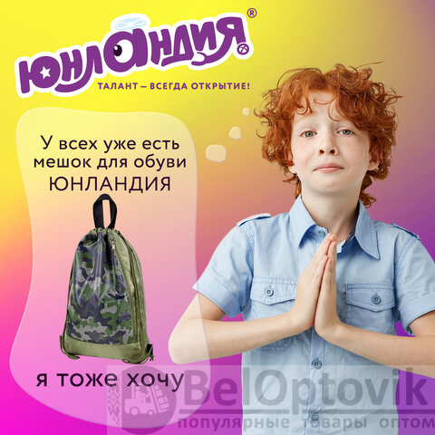Мешок для обуви ЮНЛАНДИЯ - комфорт и функциональность в одном аксессуаре для сменной обуви! Удобные ручки и вместительный карман на молнии - все, что нужно ученику.