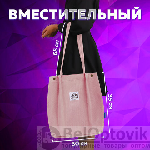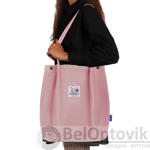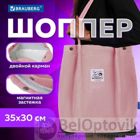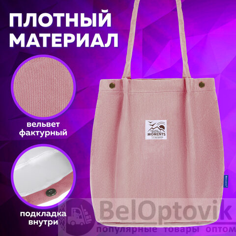 Сумка шоппер BRAUBERG MOMENTS, вельвет, 35х30 см, розовый, 271907
