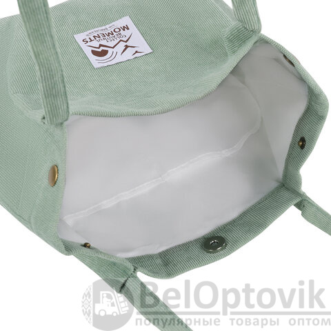 Сумка выполнена из плотного материала "вельвет", благодаря чему выдерживает нагрузку до 10 кг. Внутри износостойкая подкладка из полиэстера.