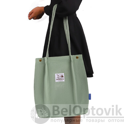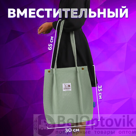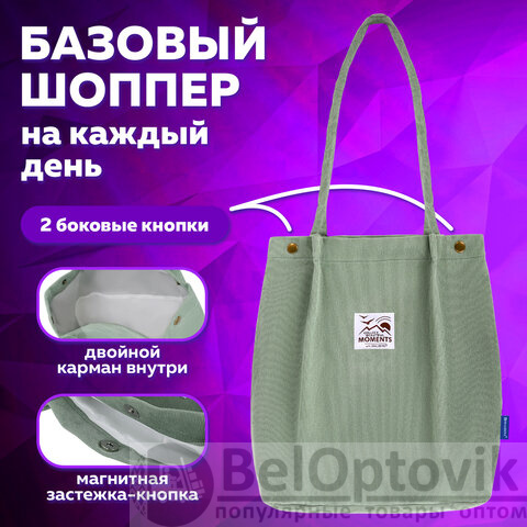 Сумка шоппер BRAUBERG MOMENTS, вельвет, 35х30 см, мятный, 271908