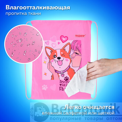 Мешок для обуви ПИФАГОР, 1 отделение, 42х34 см, "Fluffy akita", 272385