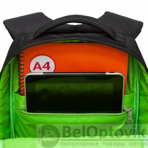Рюкзак GRIZZLY школьный, анатомическая спинка, 2 отделения, для мальчиков, STREET, салатовый, 39х26х19 см, RB-456-6/1