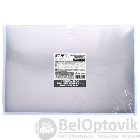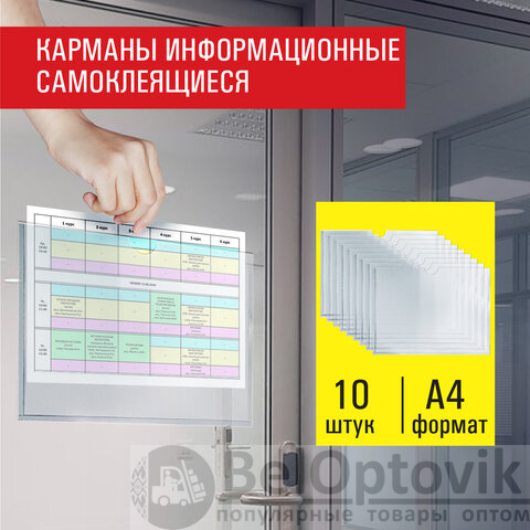 Самоклеящиеся информационные карманы STAFF – удобное решение для вашего офиса! Легкое размещение информации для организации рабочего пространства. Закажите карманы сейчас и пусть важные сведения будут всегда под рукой!