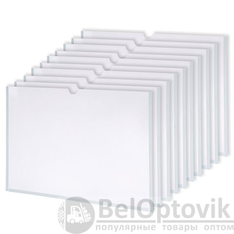 Надежно приклеиваются и держатся на любых гладких поверхностях при помощи скотча, расположенного по трем сторонам кармана. После снятия защитной ленты цвет кармана приобретает белый цвет, что идеально впишется в любой интерьер. Благодаря прозрачному покрытию документы отчётливо видны посетителю, не мнутся и не загрязняются в течение всего эксплуатационного периода. Материал изготовления: ПЭТ толщиной 0,3 мм. Единица товара: комплект из 10 шт., упакованный в термоусадочную пленку.