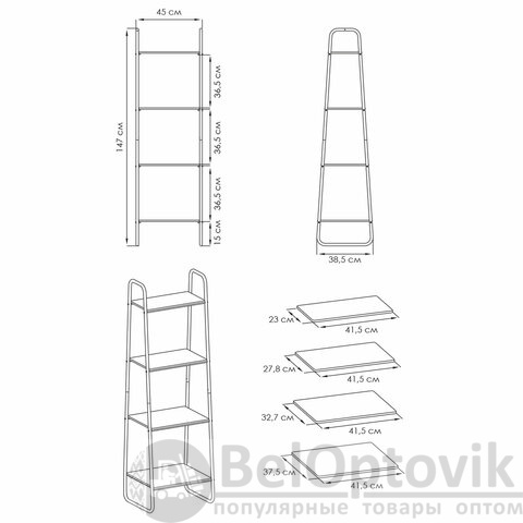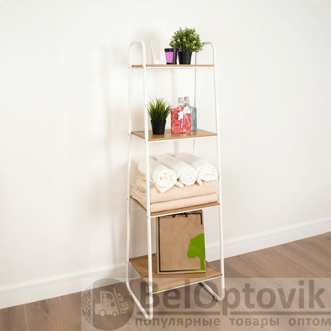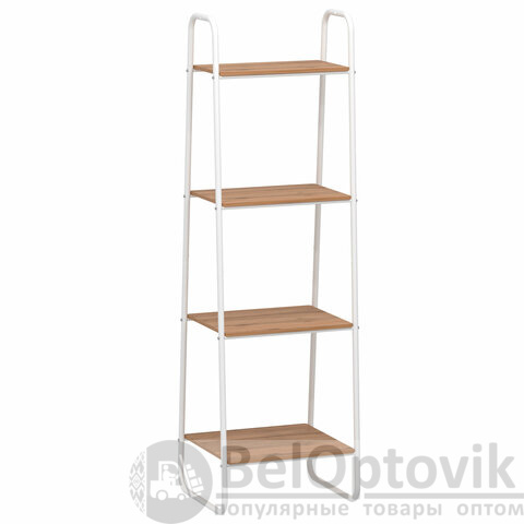 Стеллаж на металлокаркасе "Скандинавия-14", 450х385х1470 мм, 4 полки ЛДСП, белый/дуб, CТCП14 Б