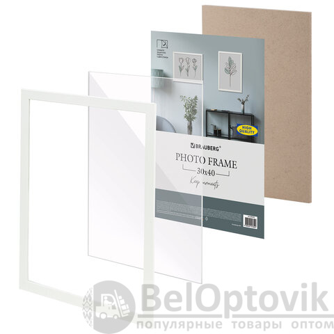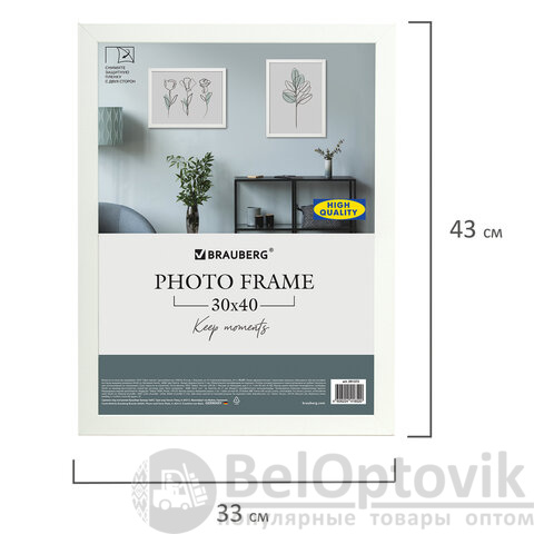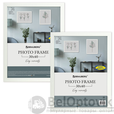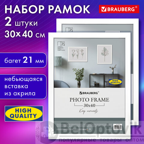 Рамка 30х40 см небьющаяся, КОМПЛЕКТ 2 штуки, багет 21 мм, МДФ, BRAUBERG "Idea", белая, 391394