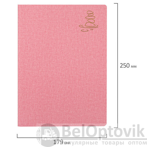 Общая тетрадь формата В5 содержит 60 листов с линовкой в клетку. Сшивка плотно соединяет листы. Обложка изготовлена из высококачественной экокожи с текстурой под "рогожку" розового цвета, что придает тетради изысканный и неповторимый стиль. Внутренний блок - белая офсетная бумага плотностью 70 г/м2.