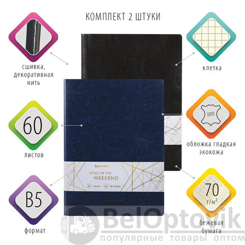 Тетради 60 л. в клетку обложка гладкий кожзам, НАБОР 2 шт., сшивка, B5 (179х250 мм), BRAUBERG VIVA, 403900