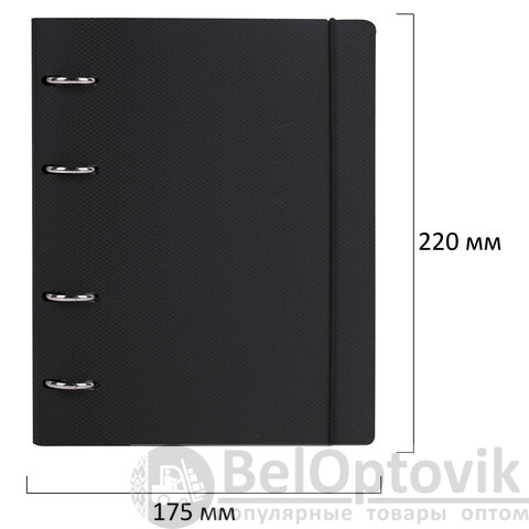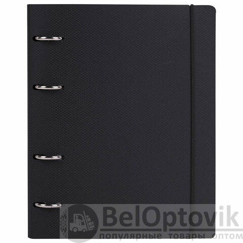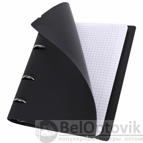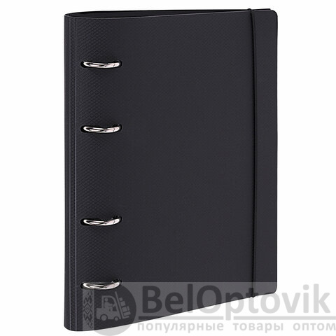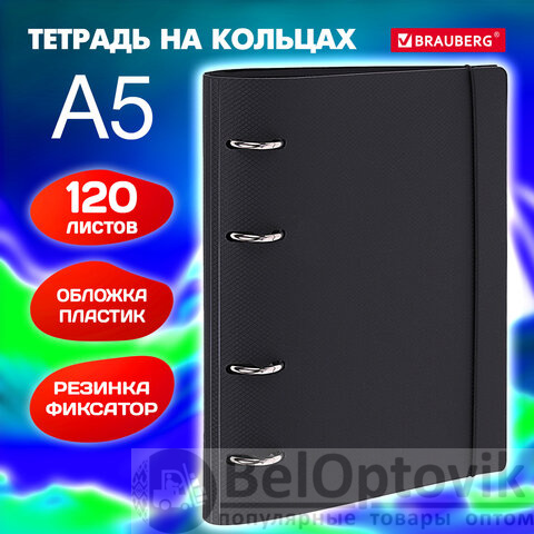 Тетрадь на кольцах А5 175х220 мм, 120 л., пластик, с резинкой, BRAUBERG, Черный, 404618