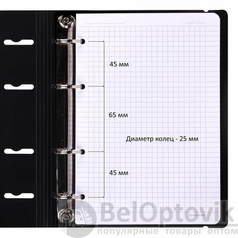 Кольцевой механизм позволяет легко сменить внутренний блок на новый, не покупая при этом новую тетрадь. Диаметр колец составляет 25 мм. Одна такая тетрадь способна заменить несколько небольших тетрадей для разного рода информации, благодаря чему место в сумке расходуется более рационально.