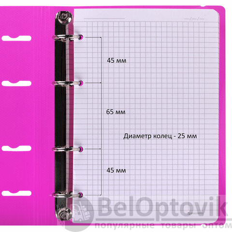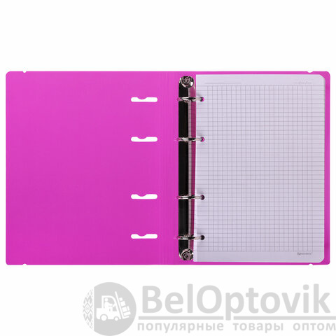 Тетрадь на кольцах с пластиковой обложкой яркого и насыщенного цвета станет незаменимым помощником в учебе и работе. Импортный кольцевой механизм позволяет легко сменить внутренний блок.