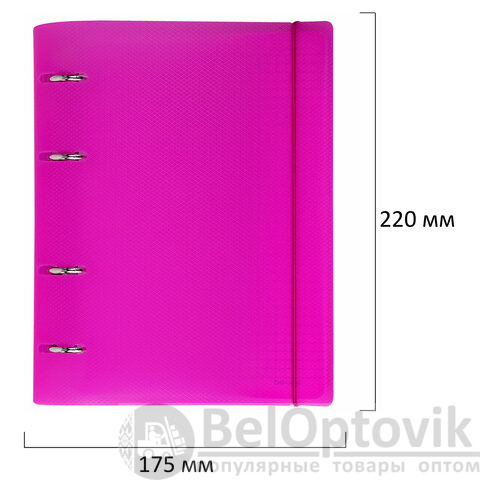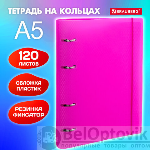 Тетрадь на кольцах А5 175х220 мм, 120 л., пластик, с резинкой, BRAUBERG, Розовый, 404622