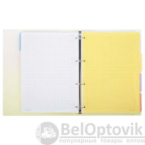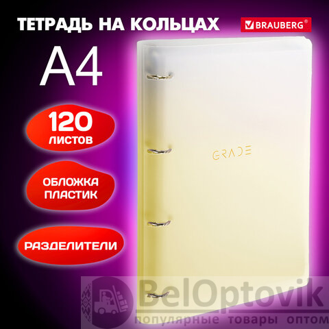 Тетрадь на кольцах БОЛЬШАЯ 305х235 мм А4, 120 л., пластик, с разделителями, BRAUBERG, Желтый, 404624