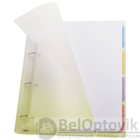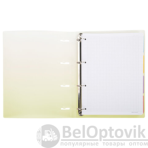 Тетрадь на кольцах с пластиковой градиентной обложкой станет незаменимым помощником в учебе и работе. Импортный кольцевой механизм позволяет легко сменить внутренний блок.