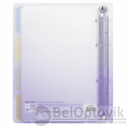 Тетрадь на кольцах А5 175х220 мм, 120 л., пластик, с разделителями, BRAUBERG, Фиолетовый, 404627