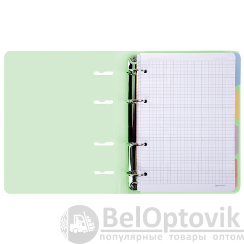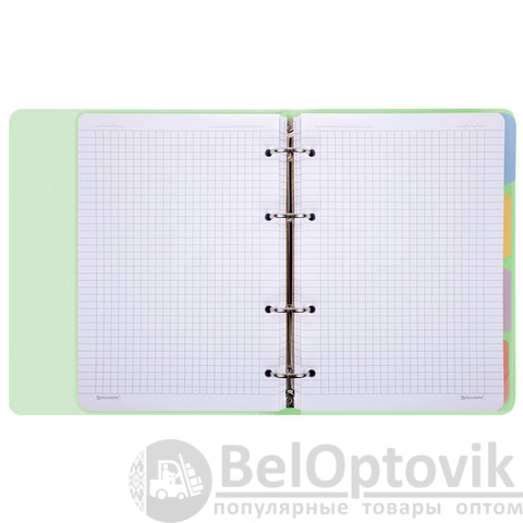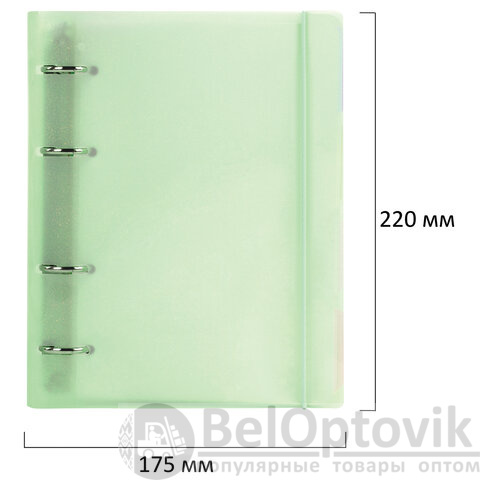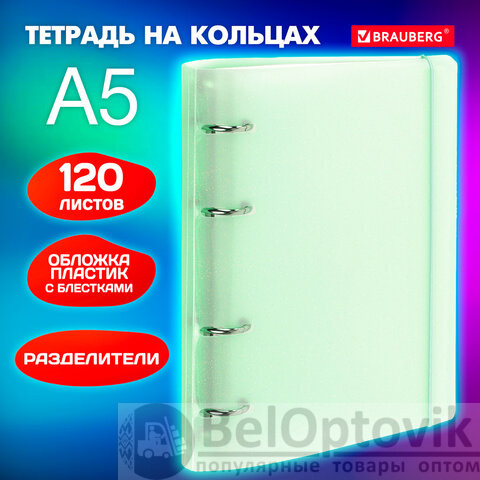 Тетрадь на кольцах А5 175х220 мм, 120 л., пластик, с резинкой и разделителями, BRAUBERG, Зеленый, 404632