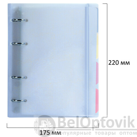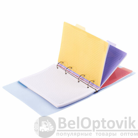 Кольцевой механизм позволяет легко сменить внутренний блок на новый, не покупая при этом новую тетрадь. Диаметр колец составляет 25 мм. Одна такая тетрадь способна заменить несколько небольших тетрадей для разного рода информации. Для удобства ведения записей тетрадь снабжена разделителями.