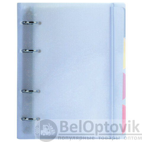 Тетрадь на кольцах с пластиковой обложкой с блестками станет незаменимым помощником в учебе и работе. Импортный кольцевой механизм позволяет легко сменить внутренний блок.