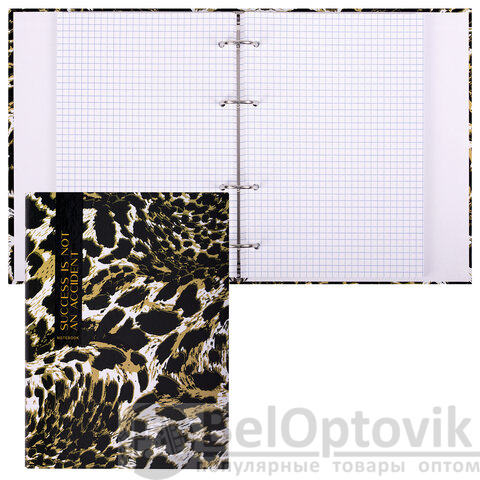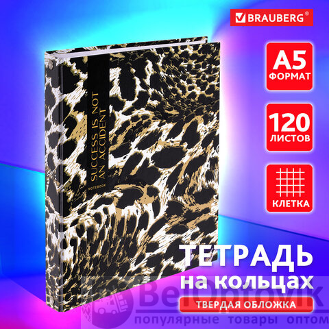 Тетрадь на кольцах А5 165х215 мм, 120 листов, твердый картон, клетка, BRAUBERG, "Leopard", 404712