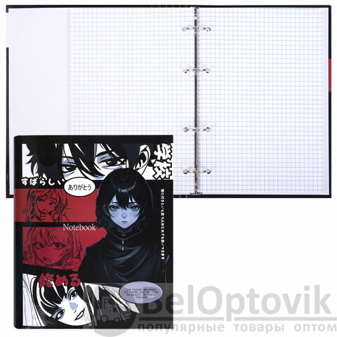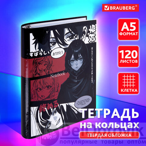 Тетрадь на кольцах А5 175х215 мм, 120 листов, твердый картон, клетка, BRAUBERG, "Anime Manga", 404715
