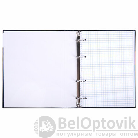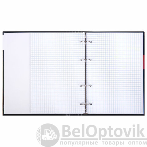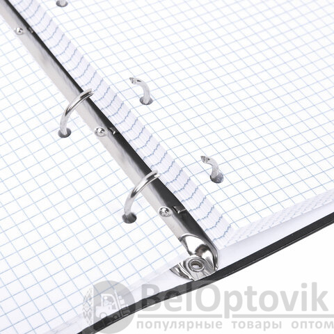 Снабжена кольцевым механизмом с 4-мя кольцами для подшивки сменных блоков, что позволит брать на учебу/работу всего одну тетрадь с возможностью добавлять и менять листы.