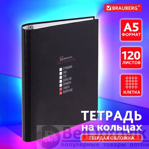 Тетрадь на кольцах А5 175х215 мм, 120 листов, твердый картон, клетка, BRAUBERG, "Стадии недели", 404717