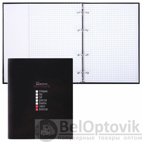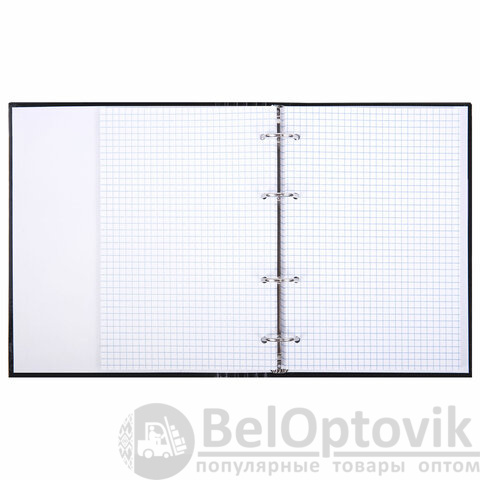 Снабжена кольцевым механизмом с 4-мя кольцами для подшивки сменных блоков, что позволит брать на учебу/работу всего одну тетрадь с возможностью добавлять и менять листы.