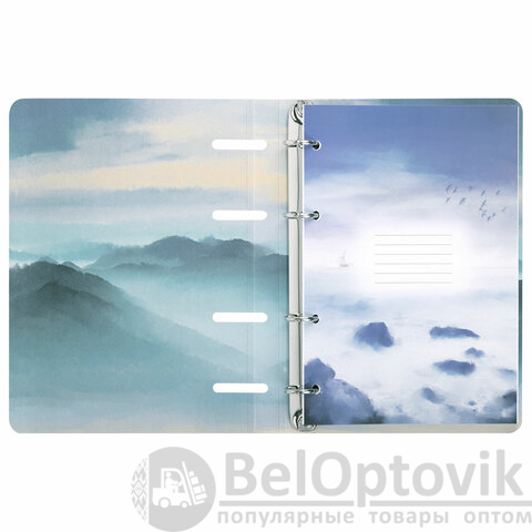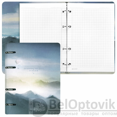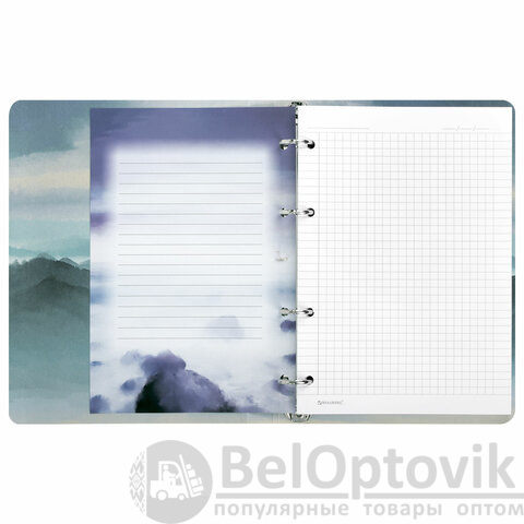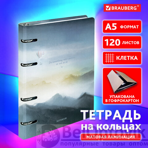Тетрадь на кольцах А5 160х212 мм, 120 листов, картон, матовая ламинация, клетка, BRAUBERG, "В горах", 404724