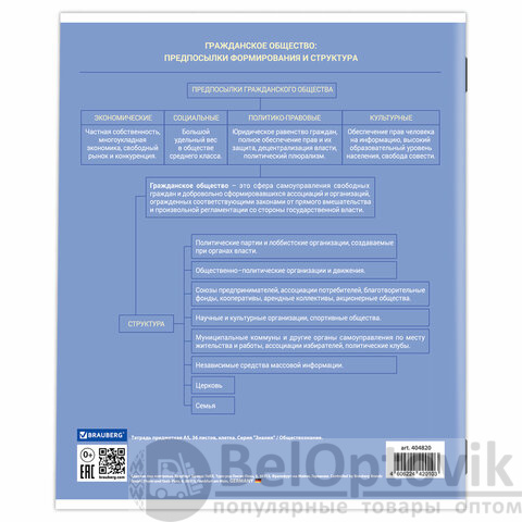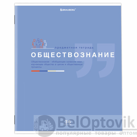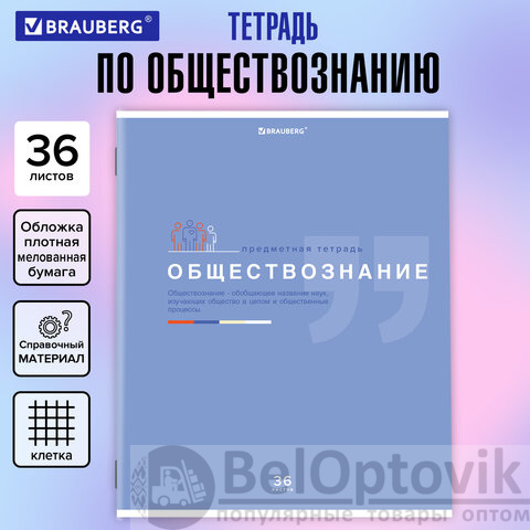 Тетрадь предметная "ЗНАНИЯ" 36 л., обложка мелованная бумага, ОБЩЕСТВОЗНАНИЕ, клетка, подсказ, BRAUBERG, 404820